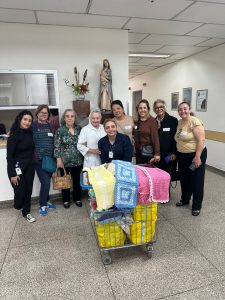 No dia 02 de outubro, o Hospital Santa Marcelina recebeu, com muita gratidão, a doação de mantas de lã e itens de tricô para bebês — como casaquinhos, meias, toucas, fraldas, panos de boca e luvas — realizada pelo Colégio Agostiniano Mendel, em parceria com a Sra. Maria Emília Delgado Galhardo.