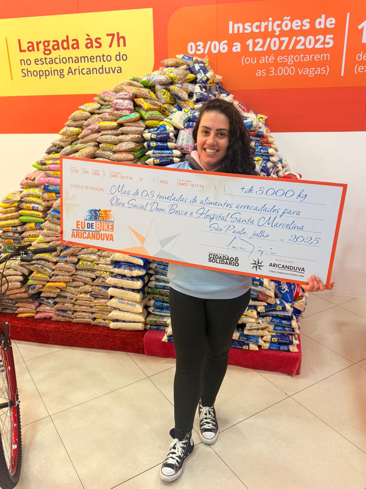 A unidade de Itaquera recebeu, no domingo (13/07), a doação de aproximadamente 1,5 tonelada de alimentos do Shopping Aricanduva, por meio do evento “Passeio Eu de Bike”.