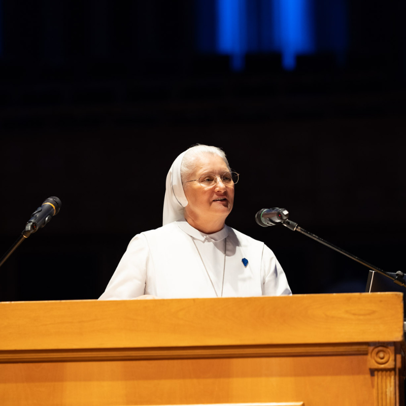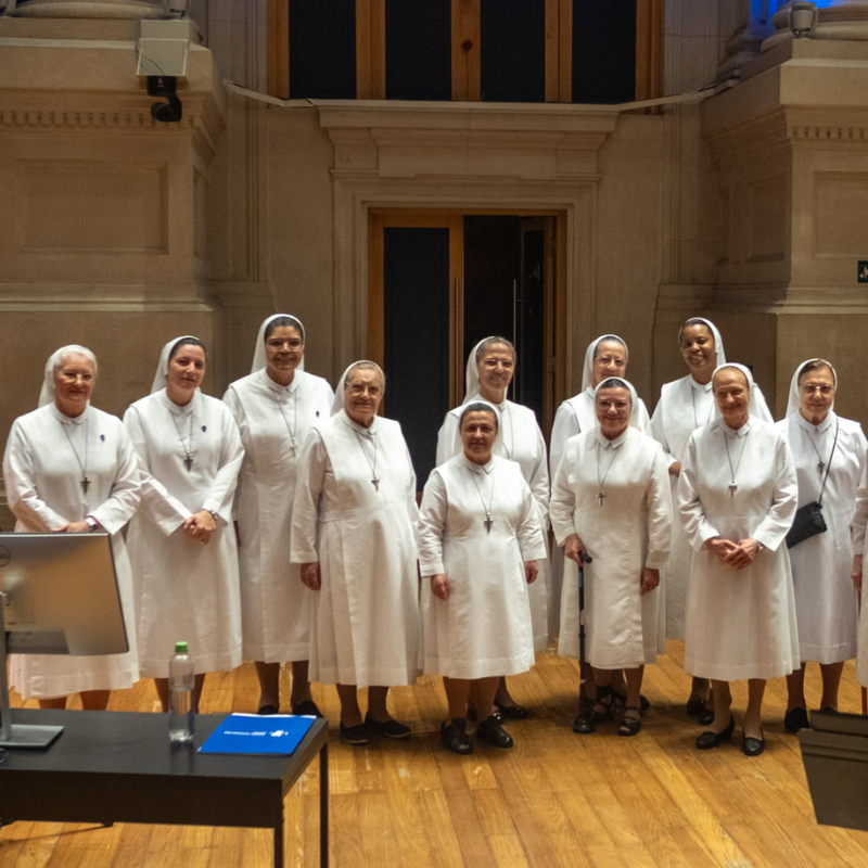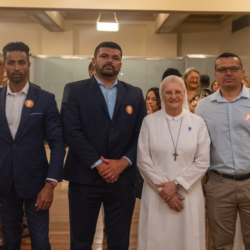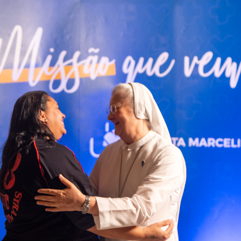 Após o discurso, houve uma homenagem especial às Irmãs Marcelinas, que tanto contribuem para a humanização, o carisma e os valores da missão. Como forma de gratidão, as irmãs retribuíram o carinho recebido à Diretora-Presidente.
