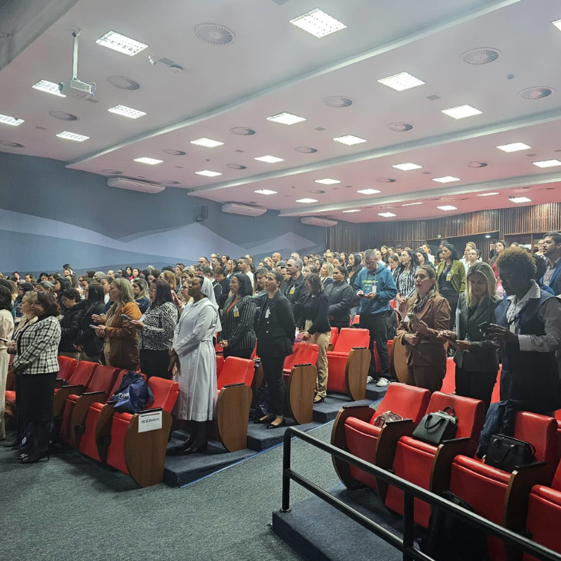 O encontro, que ocorreu no auditório Luigi Biraghi, da Faculdade Santa Marcelina (FASM), contou com a presença de representantes do Conselho Regional de Enfermagem de São Paulo (Coren-SP) em uma missa em Ação de Graças da Enfermagem, relatos de experiência sobre a prática da enfermagem nos múltiplos cenários de atuação, que promovem a saúde do planeta, e as palestras: “Gestão de Instituições de Saúde em Situações de Crise, apresentada por Sidiclei Carvalho, gerente de enfermagem do Hospital Moinhos de Vento e “Enfermagem e mudanças climáticas – O cuidado com as pessoas e com a nossa casa comum”, exposta por Jeferson Rodrigues, cientista social e especialista em saúde pública.